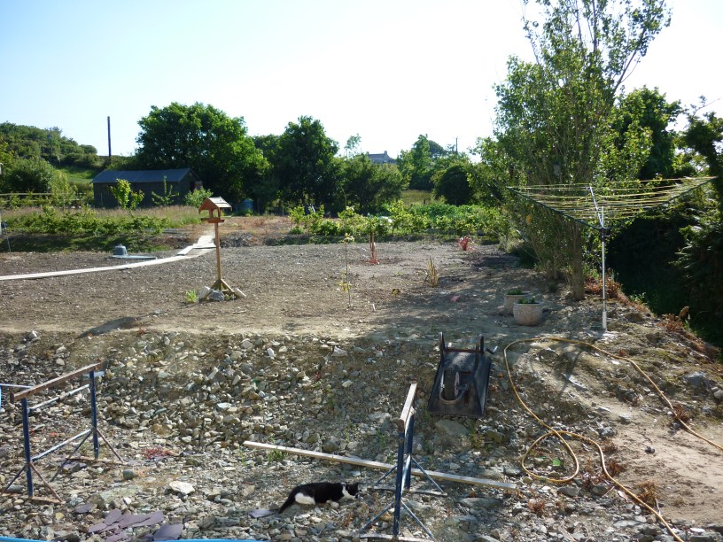 Dechrau arni yn 2009. Cychwyn drwy gael gwared o’r chwyn a llawer i lond berfa o gerrig mawr a mân, yna ychwanegu 10 tunnell o dywod cras at y clai a’r un faint eto o dail pydredig.