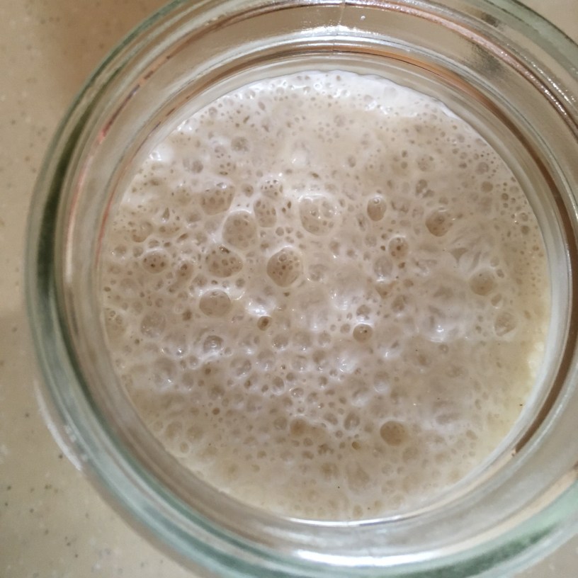 Fred needs a regular feed. To do this I add the same amount of flour and water and mix well, usually 75 grams of flour to 75 ml of water. In between use, it can be left in the fridge but it must be fed at least once a week and always 12 hours prior to making bread. If it’s not used regularly (hasn’t happened here for a while) then it’s possible that half of it would have to be discarded before feeding, to stop it growing out of its container!